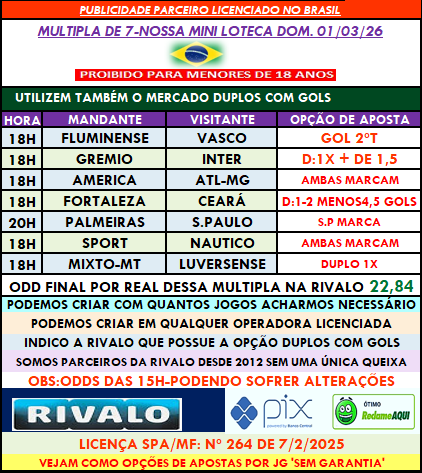 Loteca 1236:Bolsa Esportiva-Enquete-Pré Loteca 03/03/2026 // 38 comentários Tá acumulada, tá imperdivel, participem >continue