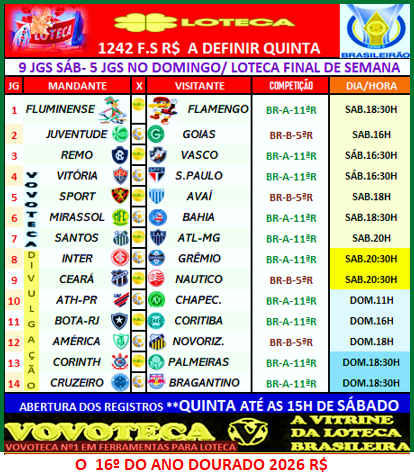 Loteca 748: Saindo do forno a nova programação- a maioria são os jogos da volta do 747- mas temos novidades na grade…confiram//Apenas 1 jogo no sábado!!!
