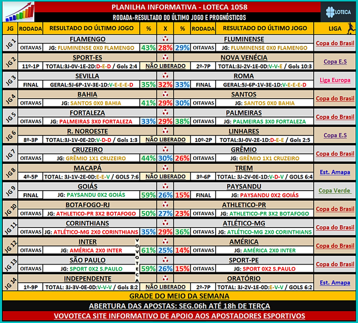 1058:Planilha informativa completa incluindo prognósticos bets (alguns a liberar) ferramenta essencial para a montagem de um jogo com informações, vovoteca e vcs afinal buscar os 14 é preciso