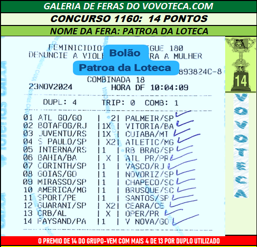 1160 14p patroa da loteca
