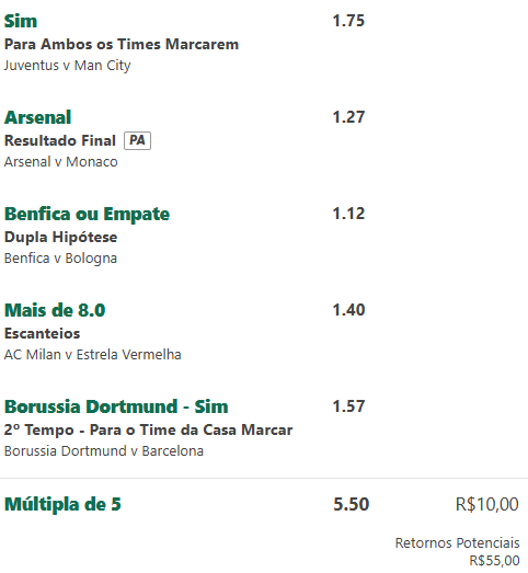 “ambas ou 2,5”, que deu em todos os jogos..