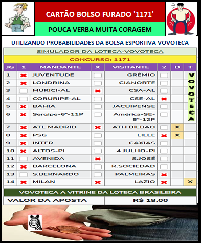 Loteca 1171: Palpites-prognósticos-Especial Copa Alagoas-Matriz 14secos-Cartão bolso furado