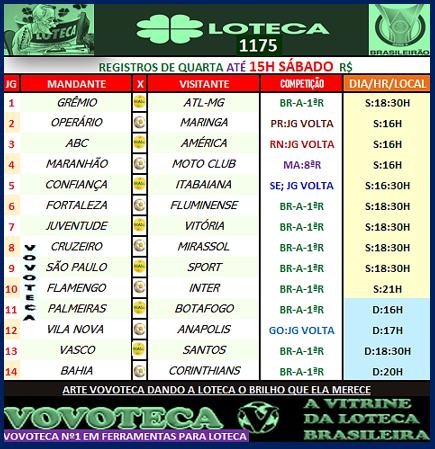 AGENDA: Loteca 1176: A primeira de meio de semana em 2025 (jgs dos dias:01-02 abril) LIBERTADORES/SUL AMERICANA os focos do programador