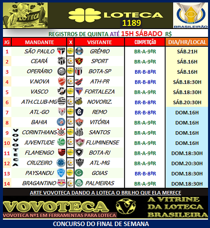 Loteca 1189: Programação do final de semana