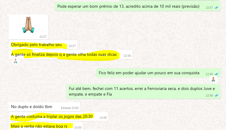 Na festa das feras do 1214 um cartão de baixo investimento e muito bem marcado, 13 acertos e o unico erro no tropeço da Raposa que briga por titulo contra o lanterna Sport/PARABÉNS a dupla pé quente CAFU E BIL que dizem ‘só finalizamos após conferir todas as planilhas e dicas do vovoteca
