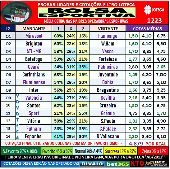 Loteca 1223:Bolsa Esportiva-Matriz 14 secos/Bets multiplas Bundesliga