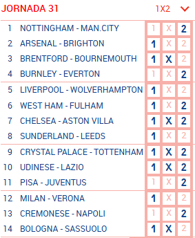 34. Os 4 jogos de domingo e tripa e acertando os jogos de sábado e correr para o abraço