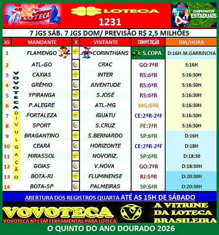 ME PARECE QUE VAMOS TER A LOTECA DA COPINHA DE SÃO PAULO: DIAS 03 E 04 DE JANEIRO TEREMOS JOGOS SENSACIONAIS. É ASSIM QUE DEVE SER: LOTECA ANIMADA E BOLA FRENTE