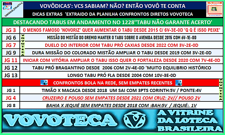 VOVODICAS: VC SABIA? NÃO? VOVO TE CONTA / extraido e ampliado da planilha confrontos