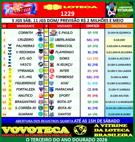 Loteca 1229:Na terceira do 2026, um novo desafio com os estaduais