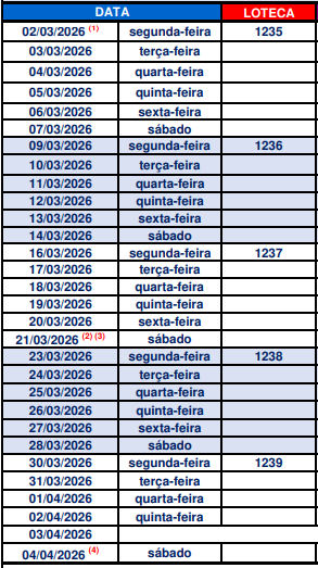 Mais uma programação desafiante na vida da nação lotequeira, concurso 1234, Estaduais com pitadas de  grande ligas européias, um prêmio previsto em R$ 7 MILHÕES a ser definido quar (18/2) , além do nosso tradicional show de planilhas estatísticas/Informativas, não deixem de visitar nossos posts jg a jg onde vc é o convidado especial os ‘nossos comentecas’