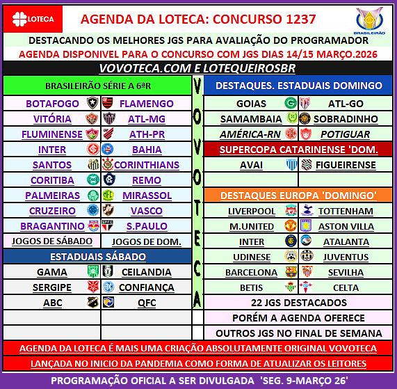 Loteca 1237: Agenda disponivel na mesa do programador