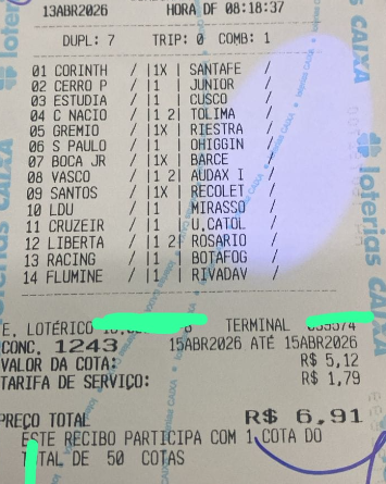 A leitura dele (criador da aposta ) levou em consideração a SULAMERICANA